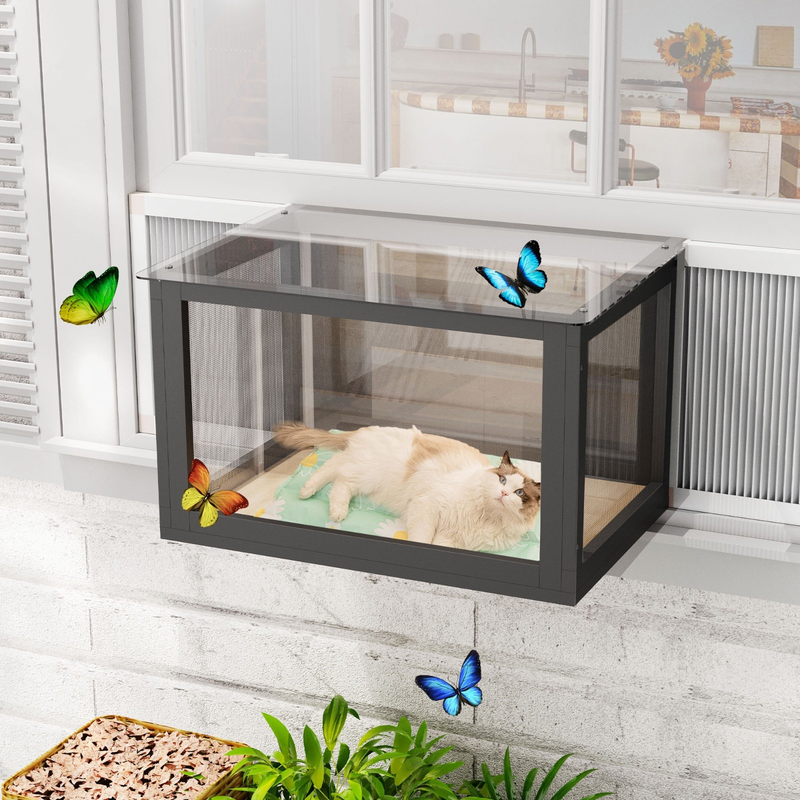 - Sunny Cat Window Box: The top and front of this cat window perch are made with crystal-clear acrylic glass, providing a full view for cats to watch the outside scenery and letting your cat bask in the sunlight while enjoying a cozy nap