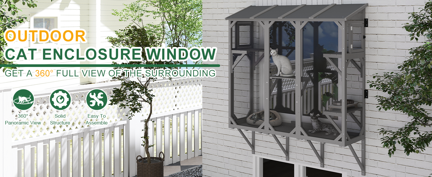 Petscosset Cat Catio Expandable Window Box Enclosure for Multiple Indoor Cats
