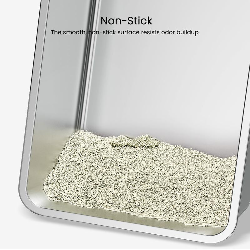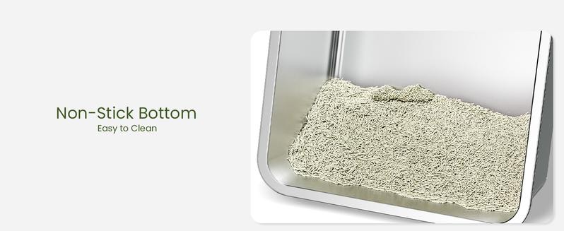 There are four silicone anti-slip pads on the bottom of the cat litter box to prevent the litter box from moving and scratching, and protect the floor.Stainless steel litter boxes do not collect any residue or odors, so if you don’t like the smell of plastic litter boxes, this litter box is a great choice for you!