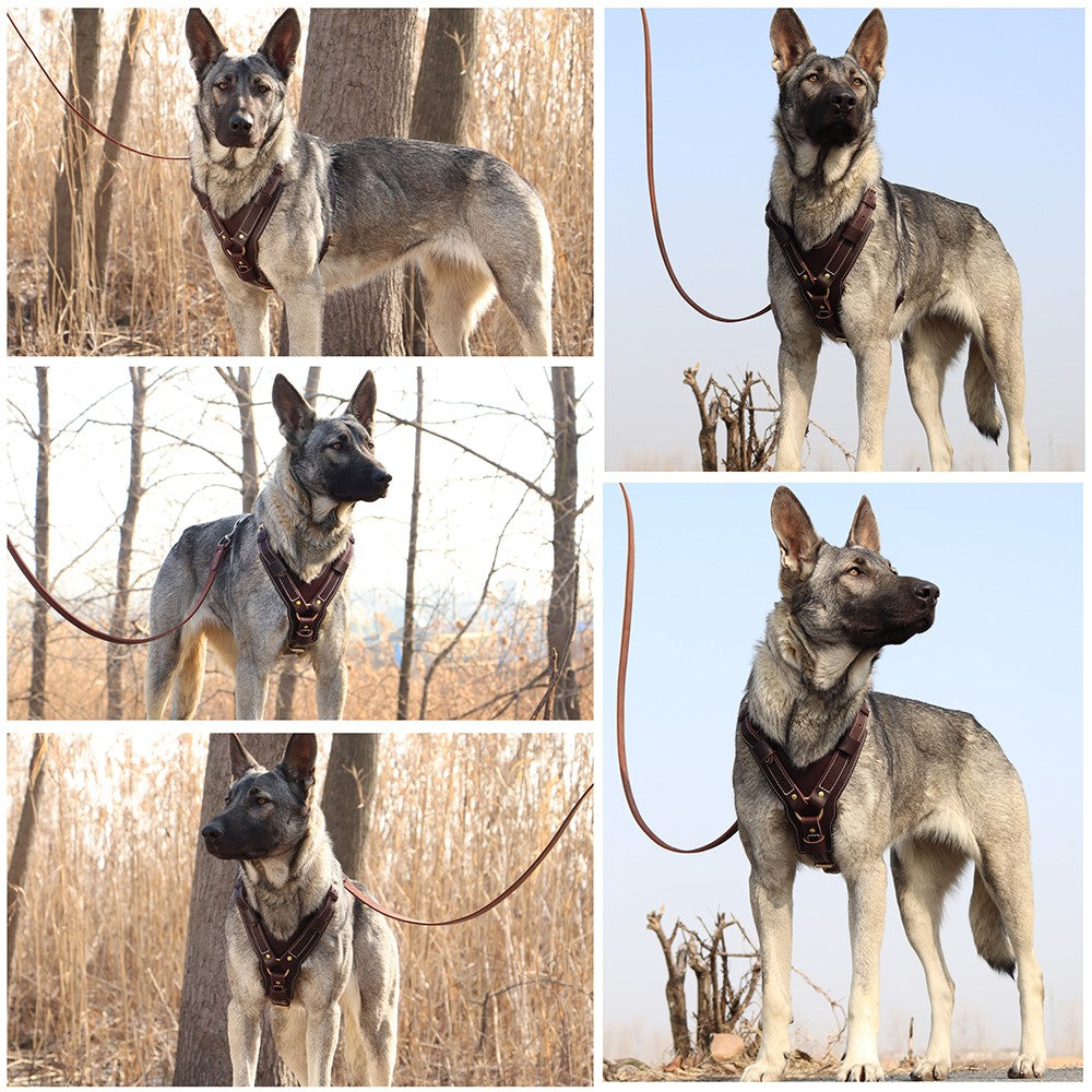 Strong Genuine Leather Dog Harness Adjustable for Large Breeds Pitbull Mastiff