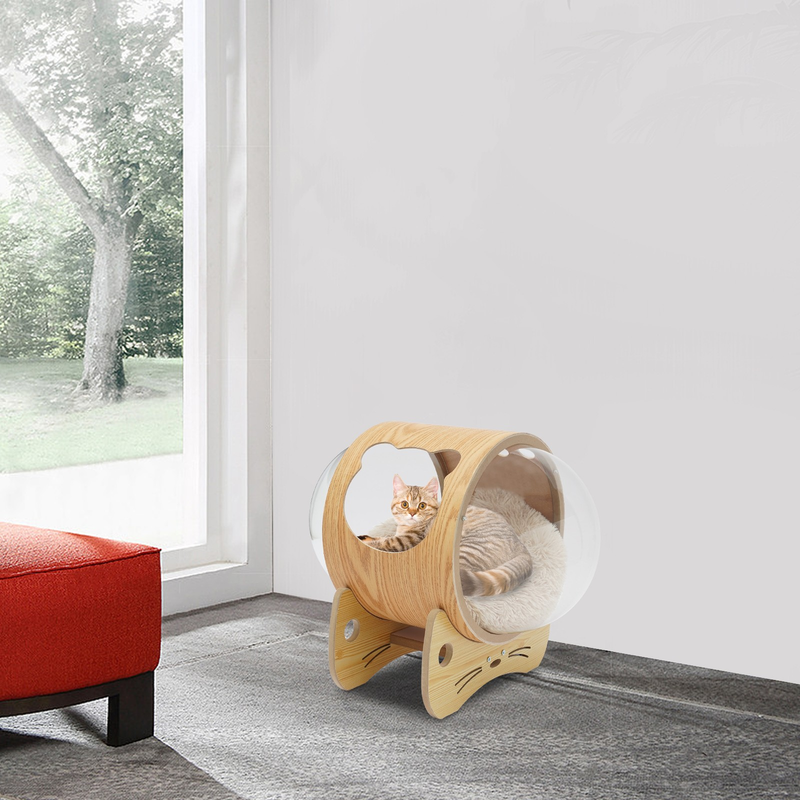 Description The warm bed can bring cats a sense of security, andthey can immerse themselves in their own small world.Our cat bed capsule can do this very well.Made of high-quality wood,cashmere, and acrylic, and adopting exquisite veneer covering craftsmanship, this item lays the foundation for your long-term use.The unique design makes it better care for your cats and lets them grow up more happily. |